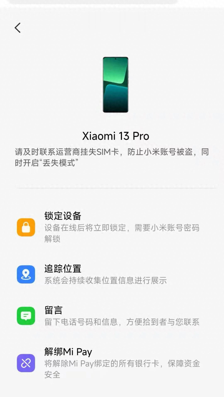 小米的防丢功能和微信、支付宝、银行卡有联动,你可以在“查找设备”里直接一键冻结支付功能,不用再单独登录APP操作——这是其他品牌没有的,比如苹果需要你单独登录iCloud冻结支付,而小米直接整合在防丢体系里,更高效。